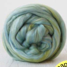 Extra fine merino wool (about 19 micron) and tussah silk tops (combed sliver).
